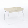Стол Чикаго СТ МП 1100(1400)*680*750 Ноги 01 белые (стекло Бежевое матовое цвет КР)
